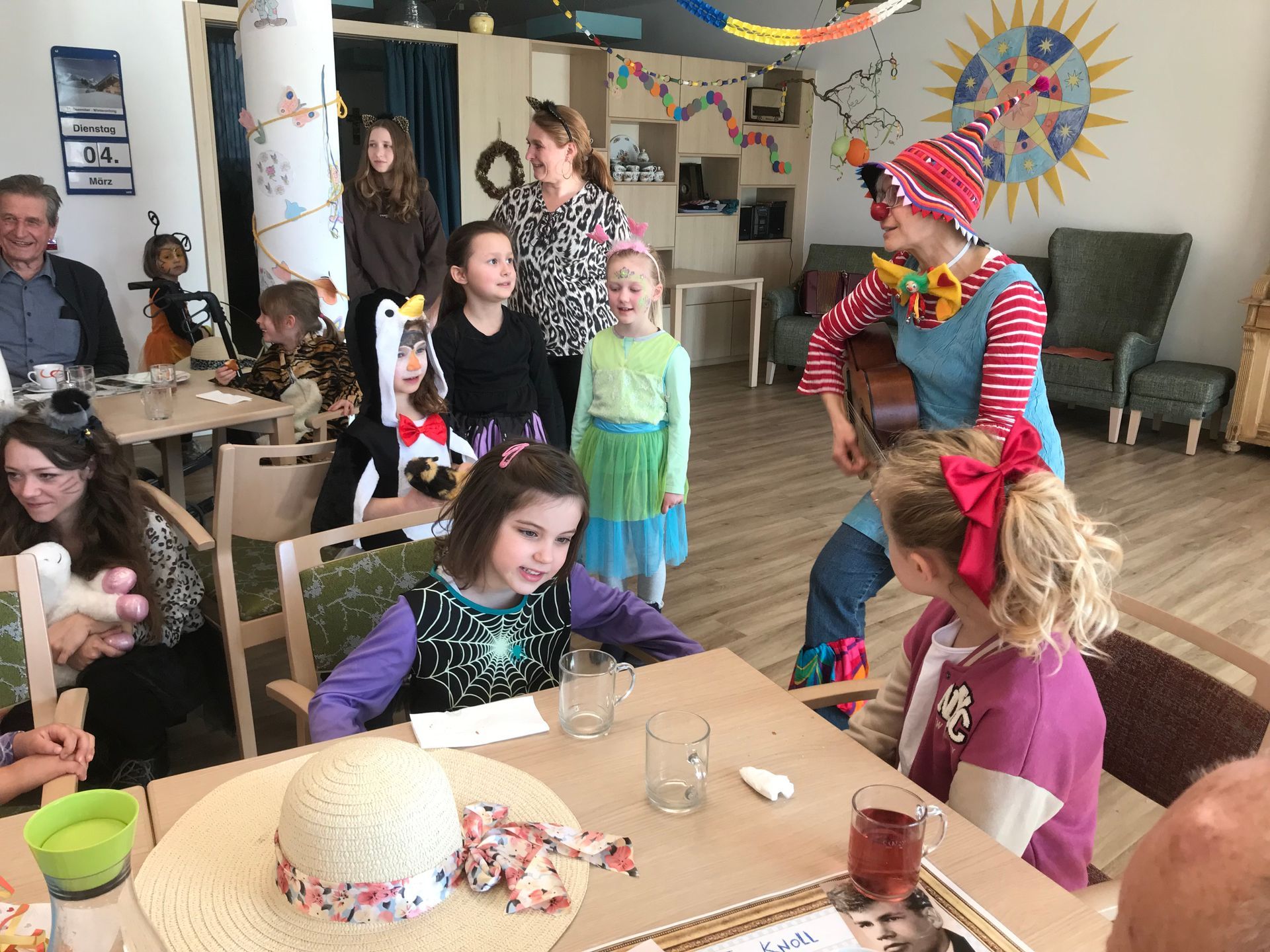 Am Faschingsdienstag tanzten viele kleine Mäuse in die Tagespflege im Schorerhof herein. Frau Bojiloff, die Pflegedienstleitung, hieß die Kinder und ihre Trainerin, Frau Sachse, herzlich willkommen.