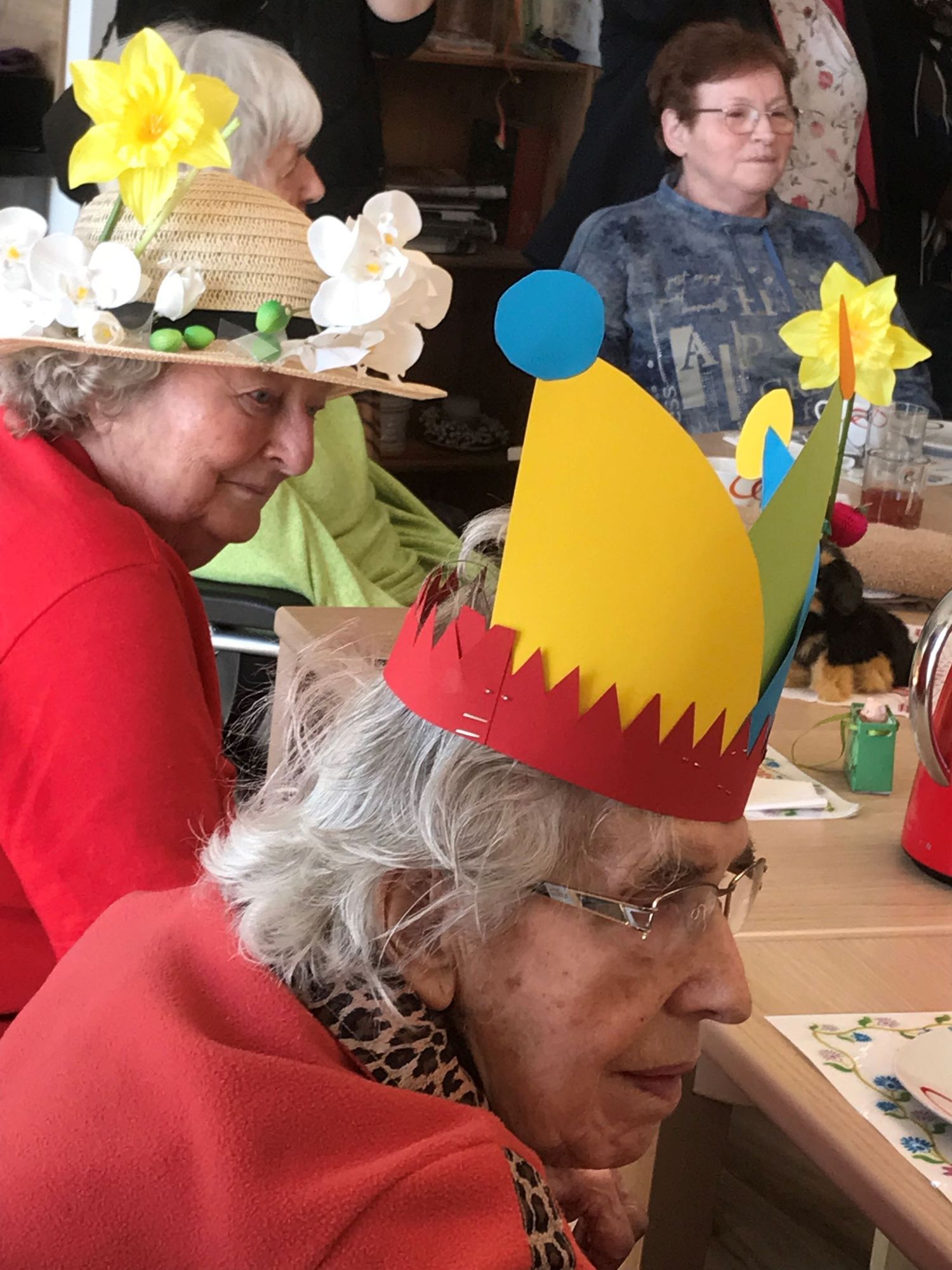 Im Anschluss besuchte Frau Trautner die Tagespflege im Schorerhof und unterstützte tatkräftig die Pflegekräfte bei der Versorgung der Gäste.
