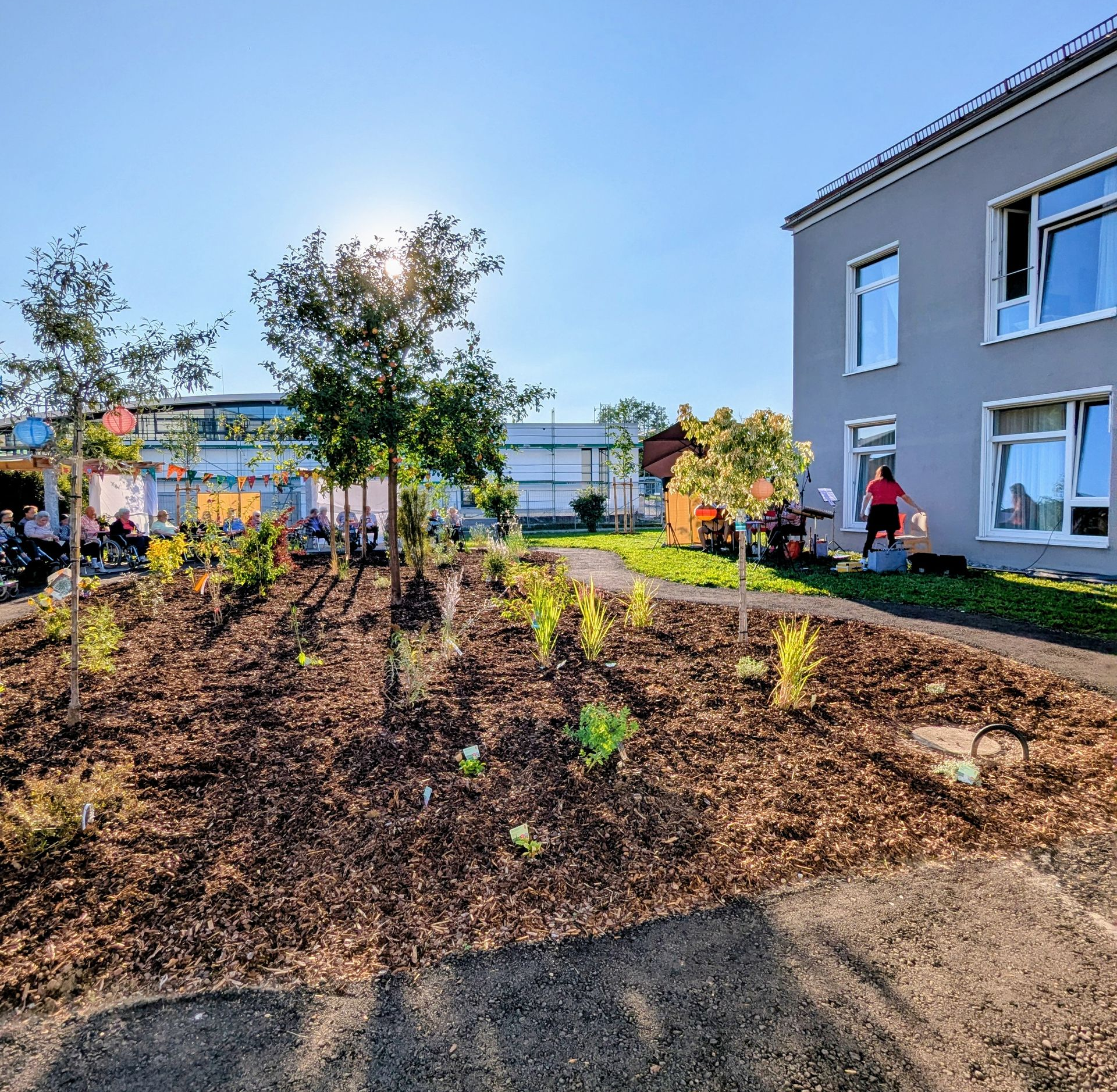 Der neue Garten ermöglicht zusätzliche Angebote im Rahmen der basalen Stimulation, die der Verbesserung der Eigenwahrnehmung dienen. Die Materialien aus dem Garten werden den Bewohnern in die Hand gegeben, dann wird darüber gesprochen, wie sich diese anfühlen, wie diese riechen und welche Erinnerungen diese hervorrufen, um die Wahrnehmung und Konzentration zu fördern. Es werden Nachtspaziergänge mit besonderer Beleuchtung angeboten. Durch individuelle Anpflanzungen, Stauden- oder Hochbeete, kann eine ökologisch nachhaltige Gartenlandschaft entstehen, die gemeinsam gepflegt werden kann. Ziel ist es, eine Begegnungsort zu etablieren für Jung und Alt.