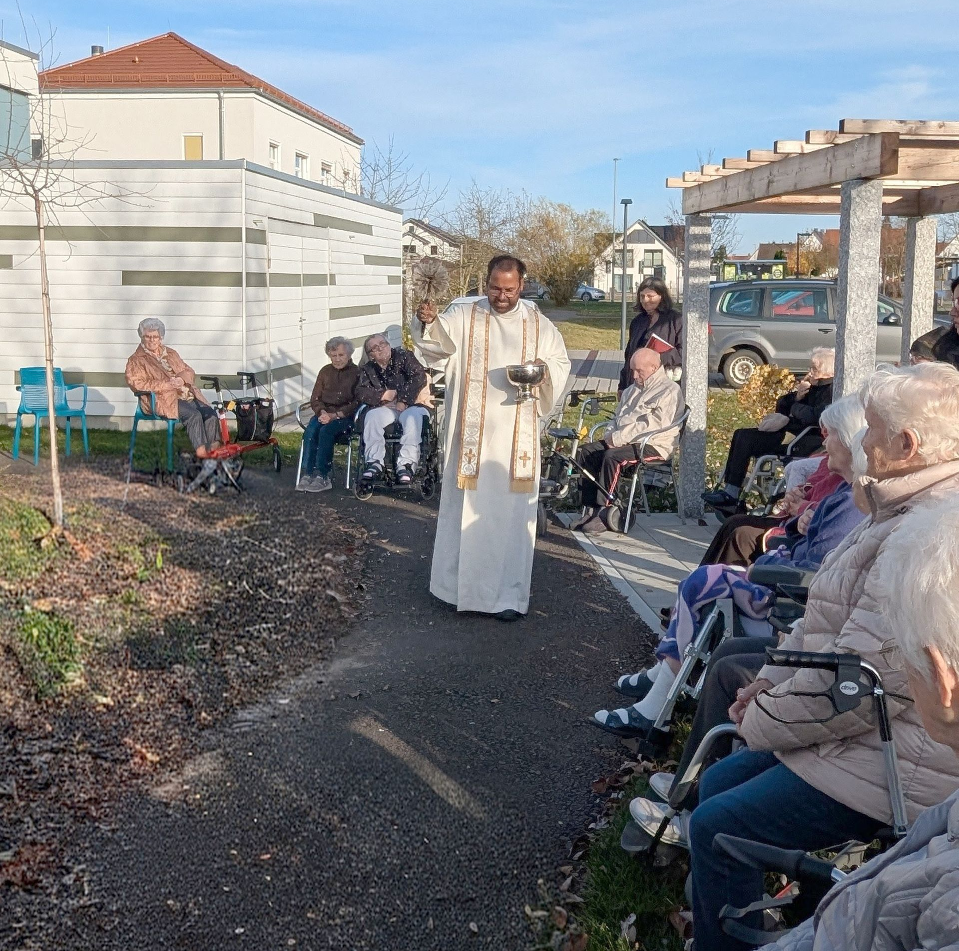 Das Wetter war gnädig und wir feierten bei strahlendem Sonnenschein im November die Wegweihe mit Pater Thomas Thalachira.