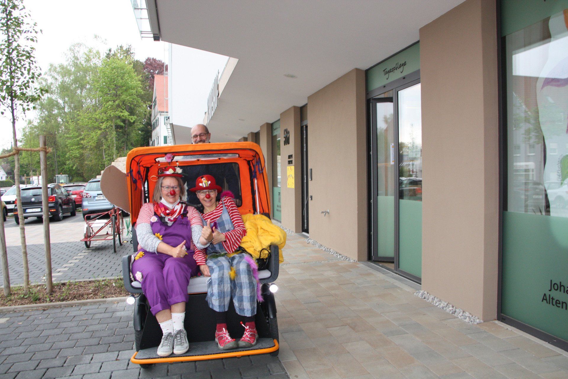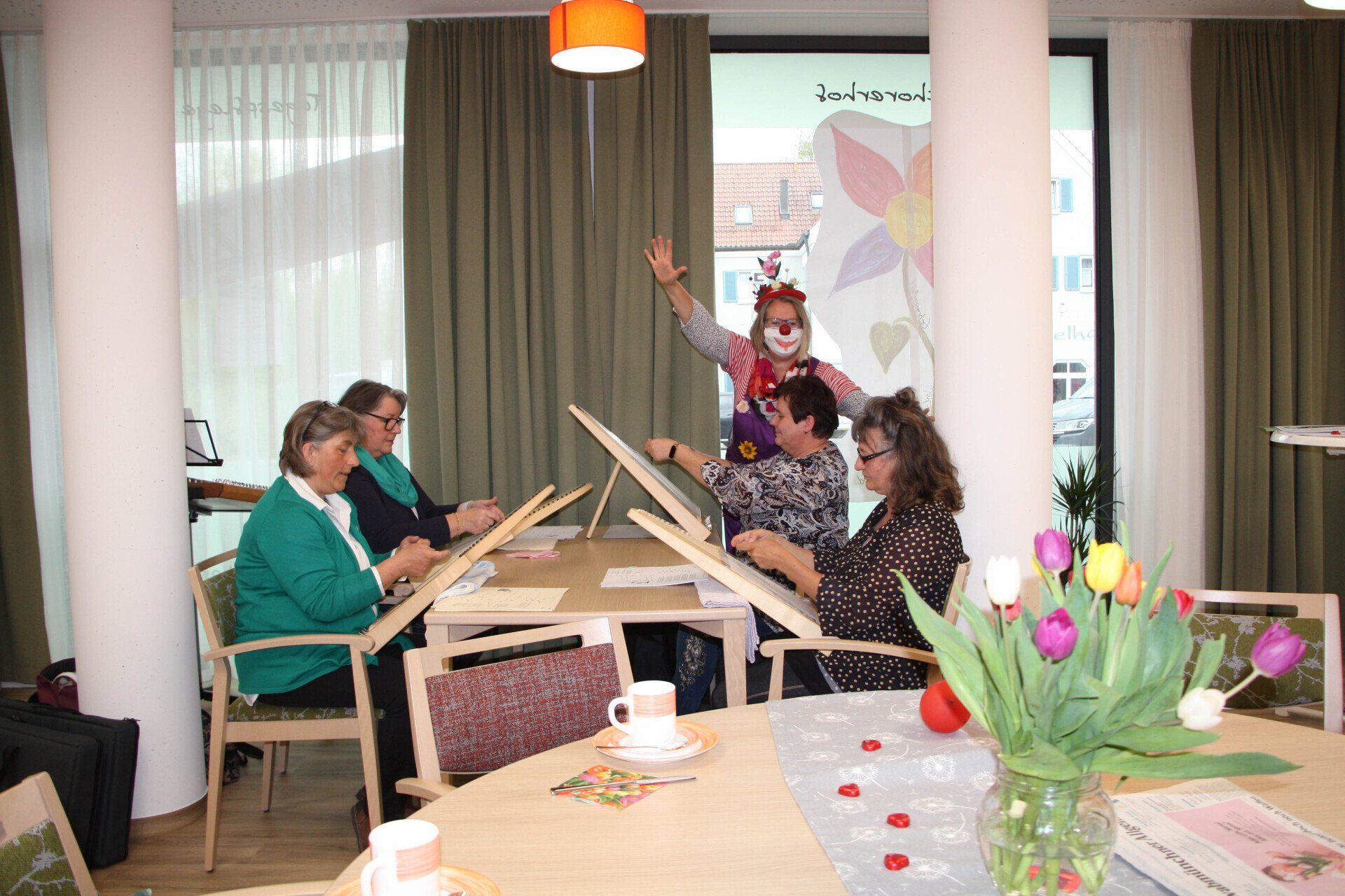 Am Samstag, 07.05.2022 durften wir den Tag der offenen Türe in unserer neuen Tagespflege am Schorerhof feiern. Umrahmt von einzelnen Angeboten, wie beispielsweise Klangschalen, Veehharfen und kreativen Events kamen den ganzen Tag über interessierte Besucherinnen und Besucher, um die Tagespflege und das gesamte neue Gebäude am Schorerhof im Zentrum von Langerringen in Augenschein zu nehmen. Begleitet wurde die Inaugenscheinnahme durch 2 Clowns, so dass es eine Besichtigung einer ganz anderen Art war, die dann oftmals auch bei einem Stück Kuchen mit Kaffee im Alpenstüble, dem Sozialraum für das Betreute Wohnen und der Räumlichkeit für den kommenden offenen Mittagstisch für Seniorinnen und Senioren aus der VG Langerringen ihren Ausklang fand.